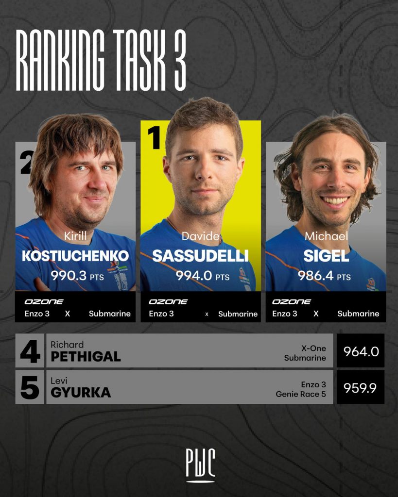 The task was won by Davide Sassudelli, marking his first ever Paragliding World Cup task victory. A strong and well-timed flight secured him the top position on a fast day.