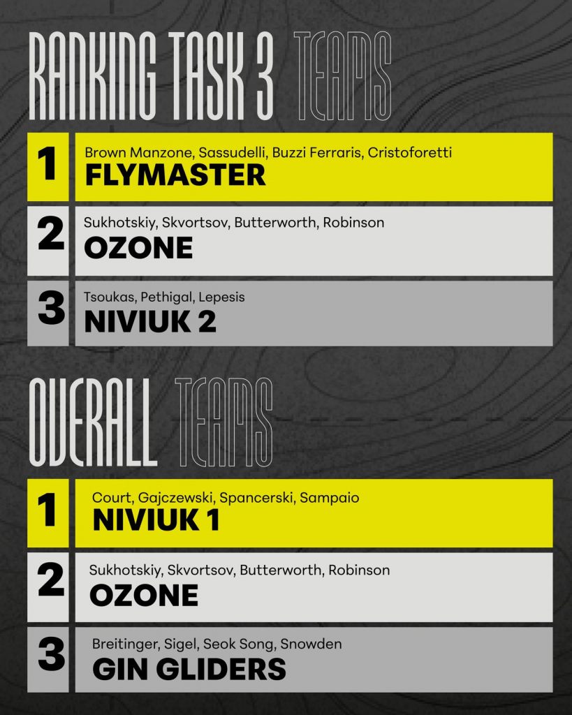 For the first time in the competition, clouds formed along the course, combining with stronger thermals to create faster conditions. Compared to the previous tasks, the race pace was noticeably higher, with pilots able to move quickly and link climbs more efficiently.