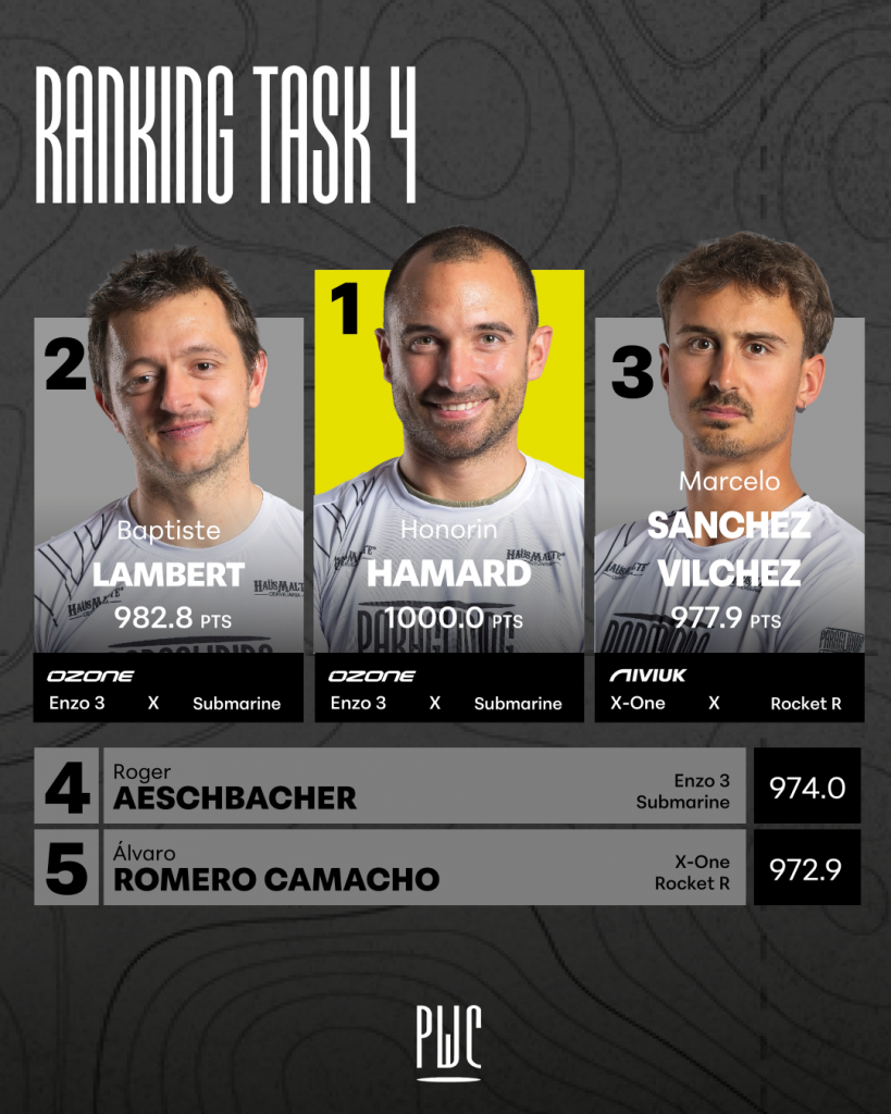 The overall winner was Honorin Hamard of France, who was the first task winner of the week to get the full 1000 points available, being both the fastest to the end of speed and having led the field for much of the task.